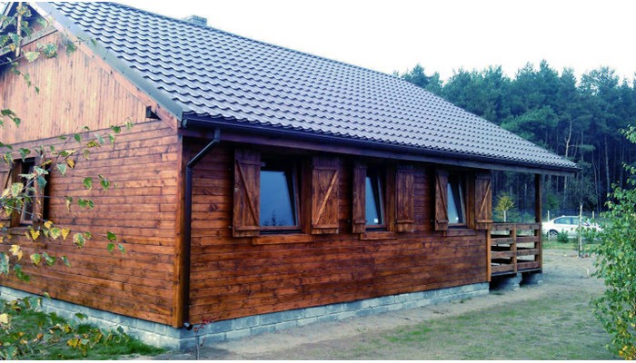 Domek wykonany jest na styl leśny, którego charakter tworzony jest przez klasyczne wykończenie narożników, balustrad oraz zastosowanie płaskiej, szerokiej boazerii. Wszystkie ściany zostały wykończone sprowadzaną z gór boazerią elewacyjną od strony zewnętrznej oraz boazerią wewnętrzną od środka. Konstrukcja domu ocieplona jest warstwą wełny mineralnej o grubości 15 cm w celu zapewnienia optymalnych warunków w domu. Pozwala to na utrzymanie chłodu w upalne dni oraz szybkie ogrzanie domu w okresie jesienno-zimowym. Ściany wyposażone zostały w warstwy paroizolacyjną i wiatroizolacyjną, co sprawia, że w domu jest bardzo cicho, a dzięki zastosowaniu naturalnych materiałów panuje zdrowy i przyjemny klimat. Dom zamykają okna drewniane, pięciokomorowe, które zabezpieczone są okiennicami o klasycznym wyglądzie.
