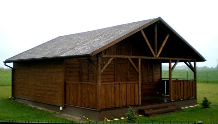 Domek wykonany jest na styl wiejski, którego charakter tworzony jest przez specyficzne wykończenie narożników, balustrad oraz otworów okiennych. Wszystkie ściany zostały wykończone sprowadzaną z gór boazerią elewacyjną od strony zewnętrznej oraz boazerią wewnętrzną od środka. Konstrukcja domu ocieplona jest warstwą wełny mineralnej o grubości 15 cm w celu zapewnienia optymalnych warunków w domu. Pozwala to na utrzymanie chłodu w upalne dni oraz szybkie ogrzanie domu w okresie jesienno-zimowym. Ściany wyposażone zostały w warstwy paroizolacyjną i wiatroizolacyjną, co sprawia, że w domu jest bardzo cicho, a dzięki zastosowaniu naturalnych materiałów panuje zdrowy i przyjemny klimat. Dom zamykają okna dewniane, pięciokomorowe, które zabezpieczone są okennicami.